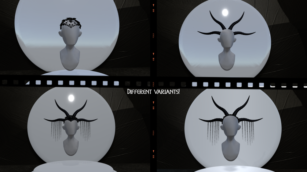 All the pieces are separated so you can use each one separately: Horns, roses, gems and strings. You can even remove the head cover if it doesn't fit your aesthetic!