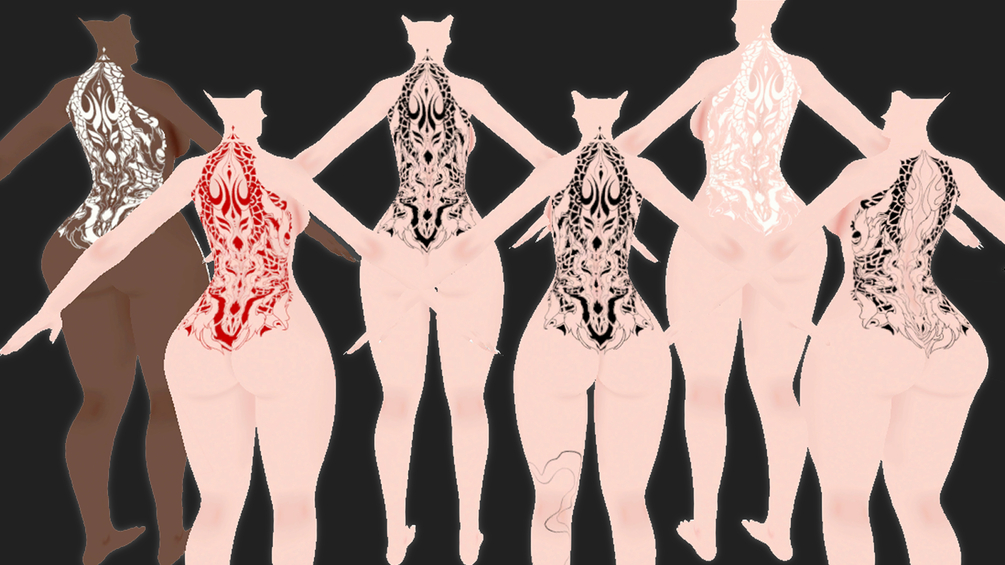 - 6 different variants of it (variants of the design, color of the tattoo and body color)