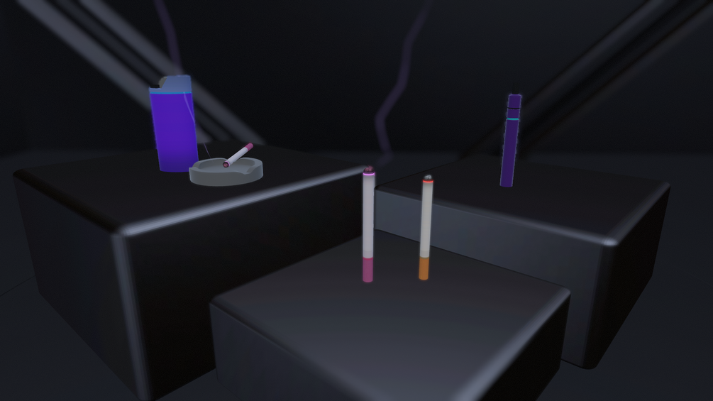 World prefab contains: Smoke that will come out of your mouth after smoking, cigarette becoming smaller when triggering or turning on in case of the vape